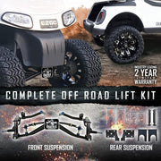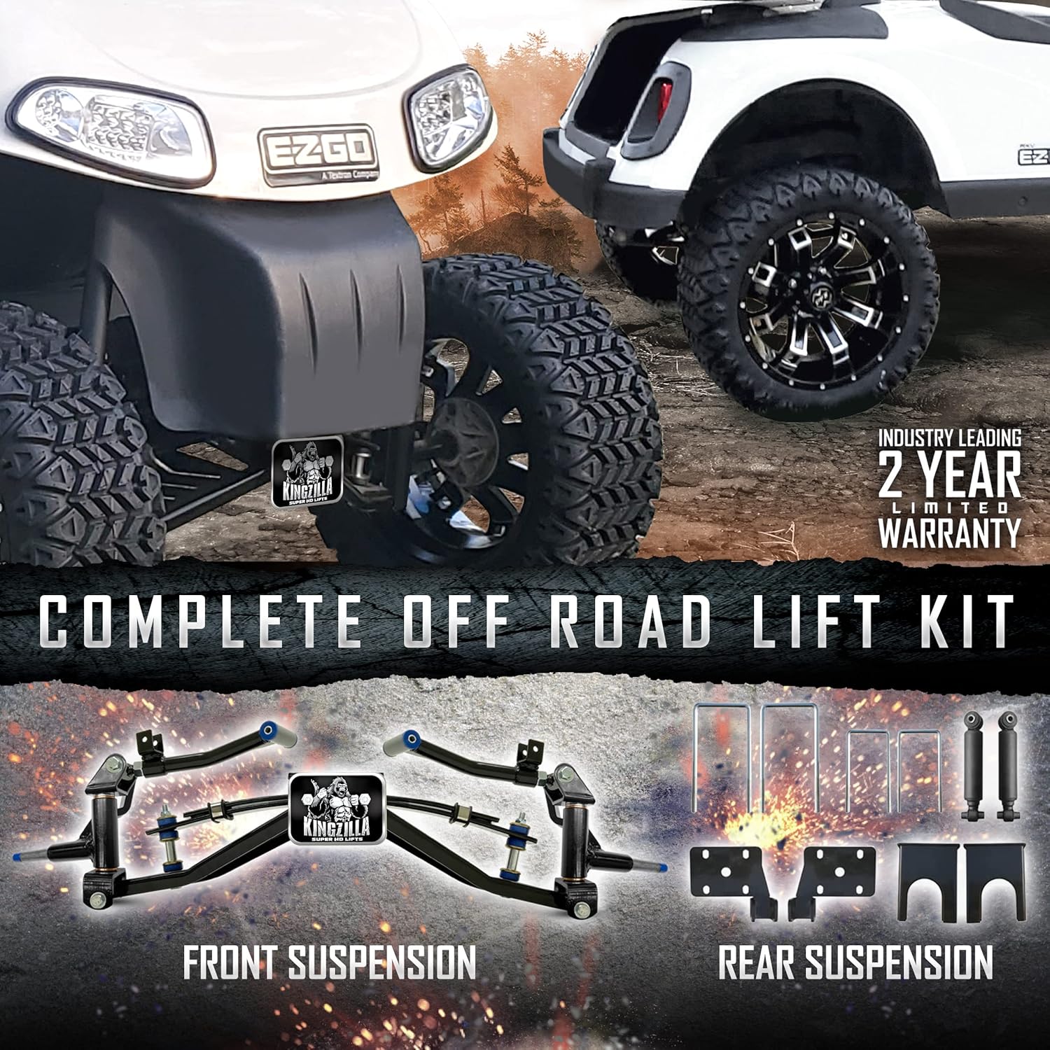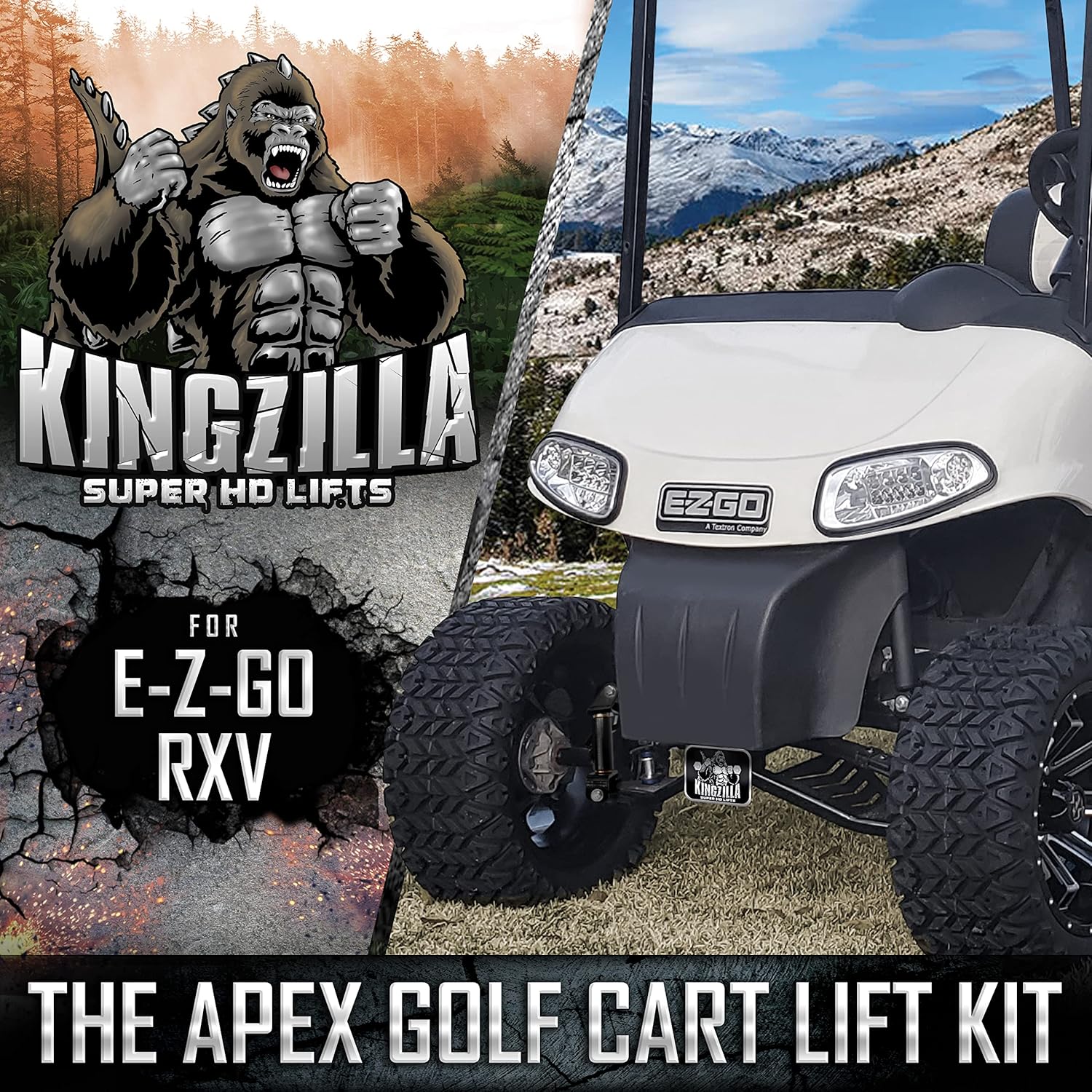 Are you ready to be the apex predator of your neighborhood? Our Kingzilla Super HD 6" Lift Kit will put you and your cart at the top of the food chain! These Kingzilla golf cart lift kits are the best built lift kits on the market for the EZGO RXV. If you are looking for a high quality, heavy duty lift kit for your EZGO, then look no further. Our patented double a-arm kingpin design is the best lift kit you can buy for your EZGO RXV golf cart. We stand behind our Kingzilla lift kits with an industry leading 2 Year Limited Warranty!