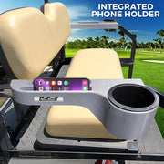 • ✅ INTEGRATED PHONE HOLDER – Integrated in each armrest is a golf cart cell phone holder designed specifically for a golf cart rear seat kit. The golf phone holder keeps your phone safe and at your fingertips. Perfect golf cart accessories for passengers needing a phone holder for golf cart. The golf cart phone holder fits all modern smart phones and all popular cases.