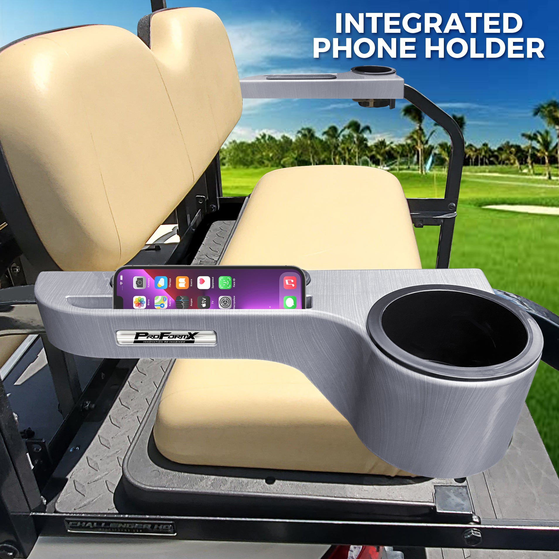 Looking to add some style and comfort to your golf cart rear seat? These bolt on armrest from ProFormX with built in cup and phone holder are just want you need! The simple bolt on design requires no cutting or drilling. These armrest will work on most golf cart rear seats with 1" or 1.25" arm rails. This rear seat armrest kit includes full color instructions and comes with an industry leading 2 year limited warranty!