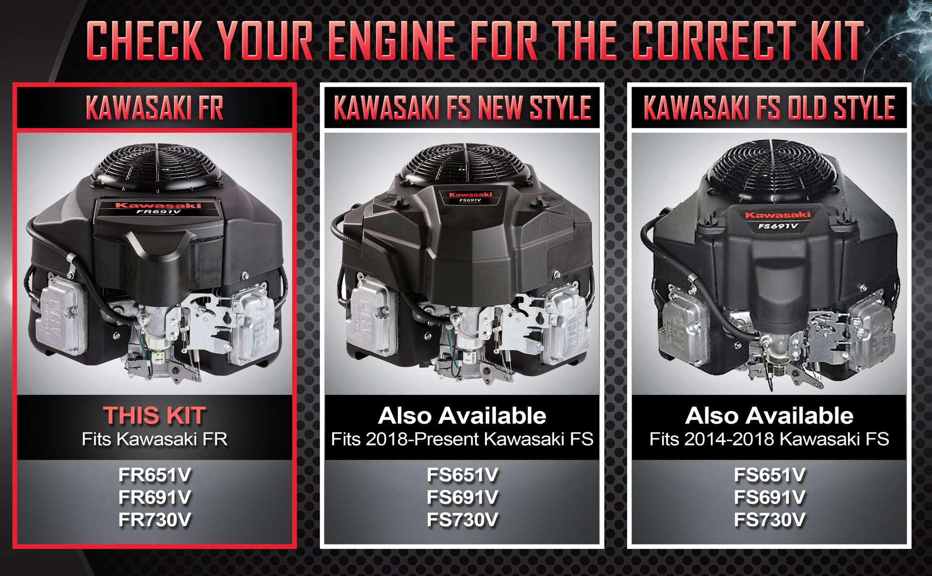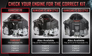 Important Compatibility Information: Please verify your engine model before ordering to ensure proper fitment. We offer three different kits, and selecting the wrong one based on model guesses can result in additional costs for the correct parts. If you are unsure of your engine model, we strongly recommend visually checking YOUR engine before purchase. Please also confirm that you do not have any space restriction above your engine; such as a bagger or engine protection bar.