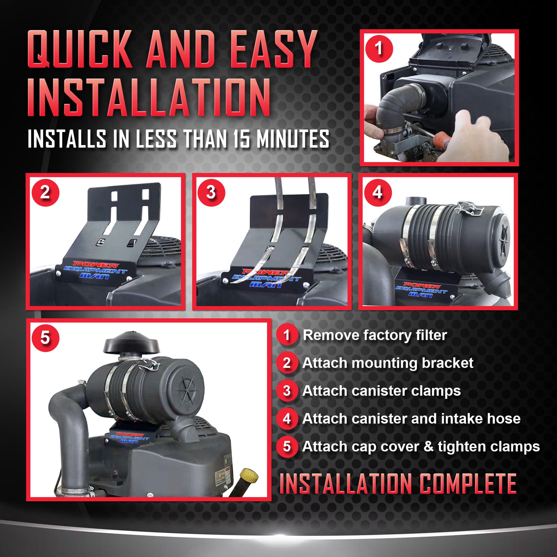 - Patent Protection: This exclusive air filter upgrade kit is designed and patented by Power Equipment Man.