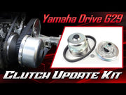 This Yamaha Drive G29 YDRA clutch update kit comes with everything you need to update your clutches to the new style FBT clutches. You will need a clutch puller to remove your old primary clutch. We do recommend you grease the spines on the transaxle shaft before installing the new secondary clutch. You will also need to apply 1 or 2 pumps of grease to the zerk on each clutch before installation, then grease every time you change engine oil or at least once per year.