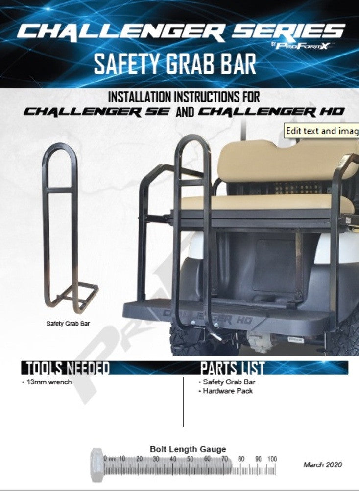 Safety Grab Bar for the ProFormX Challenger HD rear seats. Mounts easily to the rear seat foot plate.
